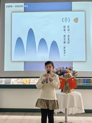 史光柱的英勇機智的故事令人十分感動,他后來帶著傷疾發奮創作詩詞歌曲,成為著名詞作家的故事同樣激勵著人們前行。此次史光柱詩詞專場歌詠會精彩紛呈,有的兒童事前下了功夫,把歌詞背熟,臨場能表演式發揮,當然,由著名作家、大愛人物張驥良推薦的優秀朗誦者馮伏生等文藝工作者朗誦水準更上一籌。還有,更難能可貴的是史光柱在歌詠會中,雖然是簡要回答了對有些歌詞的創作緣起,但無疑對學生起到了詩歌創作的點化作用。 成人和少年兒童同臺歌誦英雄史光柱十幾首詩詞,有特色、有亮點,可惜唱得只有巜小草》。大家表示以后增加歌唱人選,提高歌詠質量,讓弘揚大愛更具體、更實在而生動。 歌詠會能展示詩人豐蘊的文學造詣與高尚的愛國情操,小朋友感受到了嗎? 歌詠會難道不是一次音樂和文化的盛宴,和心靈的洗禮嗎?